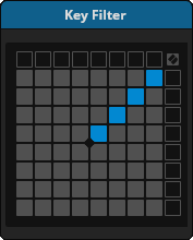 你可以通过点击或拖动屏幕上的LAUNCHPAD来选择或取消选择用于滤波的按键。带有蓝色位置的传入信号将通过该插件,其他信号则会被阻止。
