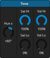 – 饱和度高/低和明度高/低:将传入的饱和度和明度从其全范围(0% – 100%)移动到各自旋钮指定的范围。