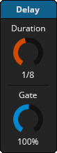 Duration和Gate旋钮控制信号的延迟时长。Duration可以用音乐细分表示,也可以通过右键点击旋钮切换为毫秒值。Gate作为Duration的简单乘数。