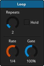 循环插件用于重复传入信号,可用于循环简单效果,如基于复制的特效。重复次数旋钮控制传入信号的重复次数。如果启用保持功能,信号将一直重复,直到信号熄灭(或松开)。Duration和Gate旋钮控制传入信号的重复频率。