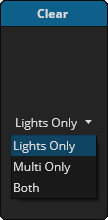 清除插件用于将项目重置为中性状态。下拉菜单可选择仅清除LAUNCHPAD灯光状态、仅将多插件重置为中性状态或同时执行两种操作,并且与切换插件一致,信号释放时触发重置。